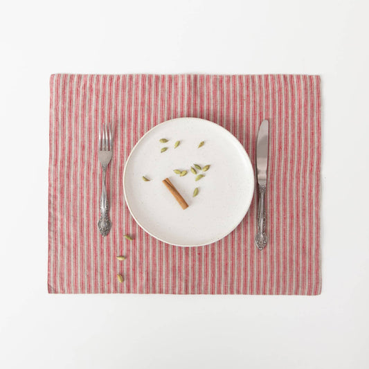 Lot de 2 serviettes en lin à rayures naturelles rouges
