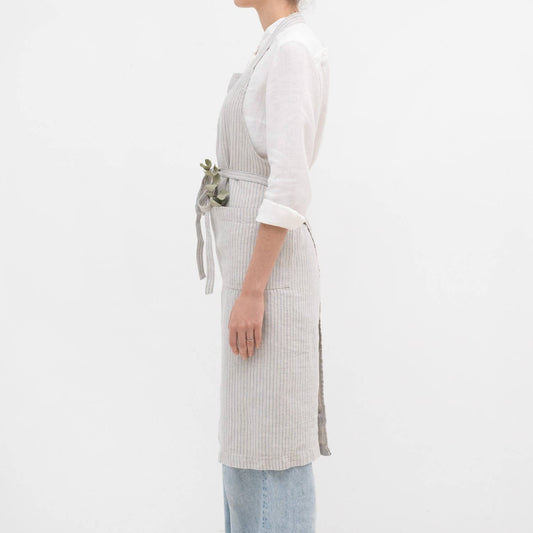 Tablier japonais à dos croisé – A rayures rouges et lin - Élégance quotidienne en cuisine