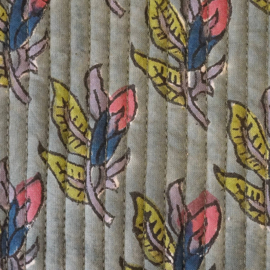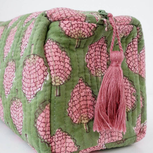 Trousse de toilette en coton block print vert et rose