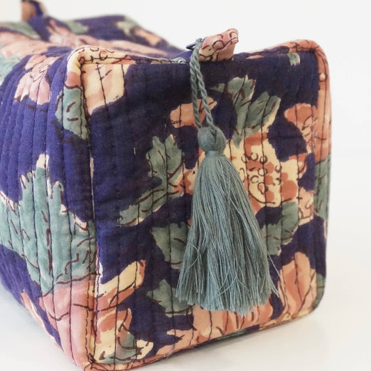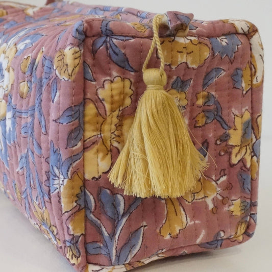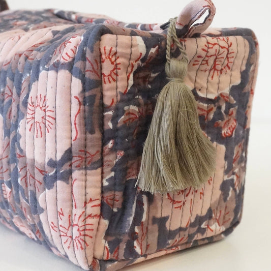 Trousse de toilette block print floral rose et gris
